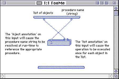 There was also a special annotation called an injection — you would leave the name of the function rectangle blank and pass a string name to the rectangle using the injection input. The function with that string name would be evaluated. This gave you some decent metaprogramming capabilities.